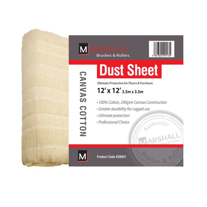 Canvas Cotton Dust-Sheet 12Ft x 12Ft, heavy duty canvas dust sheet, made from 7oz, heavy weight fabric.